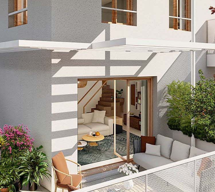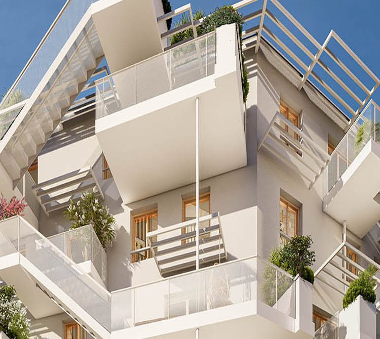 Conçue par les architectes GROUPE 6 & Nicolas LAISNE Architectes, la résidence est composée de 3 bâtiments de R+2 à R+5, avec 2 niveaux en sous-sol de parking.