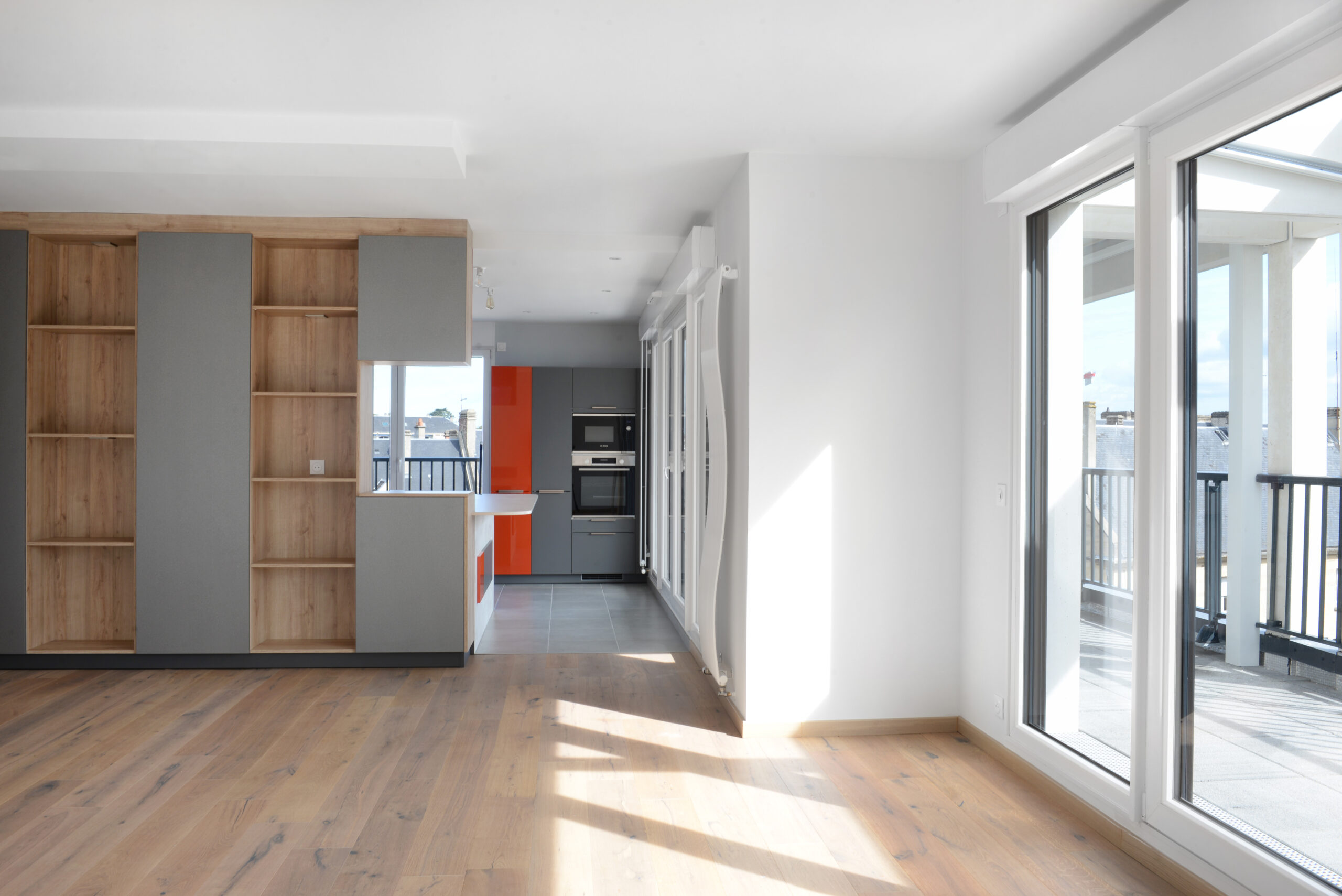 La qualité architecturale de cet ensemble avec sa façade en pierre de taille se décline aussi à l’intérieur des appartements avec des surfaces généreuses et de grandes hauteurs sous plafonds. Les logements offrent des prestations haut de gamme telles que : parquet en chêne contrecollé, meuble vasque au design contemporain, visiophone, ascenseur…