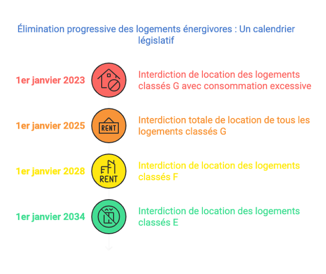 – 1er janvier 2028 : Interdiction de location des logements classés F.