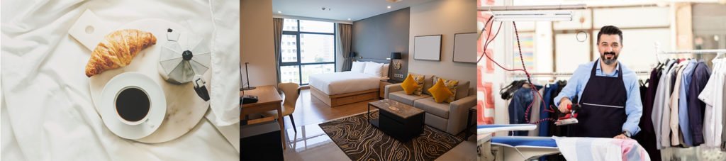 Trois des quatre services suivants sont nécessaires pour être qualifiés de résidences de services : l’accueil, le ménage, la laverie et le petit déjeuner.