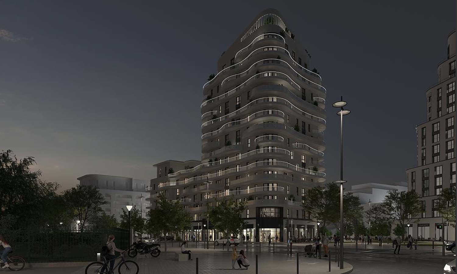 D’architecture contemporaine, la résidence sera mise en valeur par une végétalisation des terrasses et balcons et, de nuit, par une scénographie lumineuse. Elle disposera d’une terrasse partagée au panorama dégagé, qui sera aménagée et mise à la disposition des habitants pour plus de convivialité.