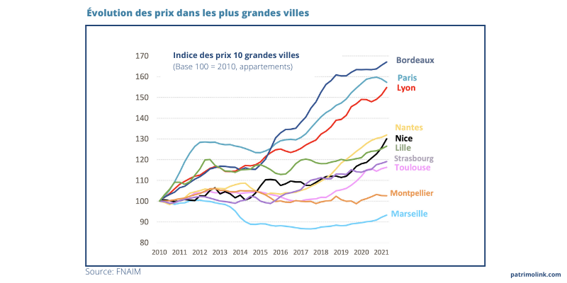 D’autres grandes villes comme Rennes (8,7%), Lyon (+8,4%), Nantes (7,8%), Toulouse (7,1%), Montpellier (7,6%) ont connu des progressions un peu moindres mais remarquables tout de même.