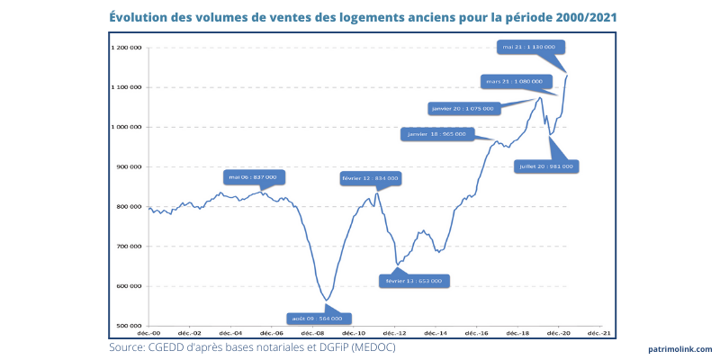 Au 31 mai 2021, un nouveau record a été atteint. 1,13 Million de transactions dans l’ancien ont été enregistré sur les douze derniers mois selon la dernière note conjoncturelle des Notaires de France. Un volume de transactions d’autant plus remarquable qu’il s’inscrit dans un contexte de crise sanitaire et économique. Ces résultats attestent une fois de plus du dynamisme exceptionnel et de la capacité de résilience du marché immobilier en période de crise ainsi que de la confiance qu’on les français dans la pierre en tant que valeur refuge.