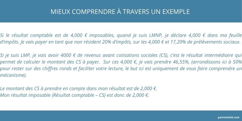 Si vous avez un résultat imposable avant cotisations négatif, ces cotisations seront aux alentours de 1150 Euros dans le cas du LMP. Ces 1,150 € sont déduits du résultat imposable.