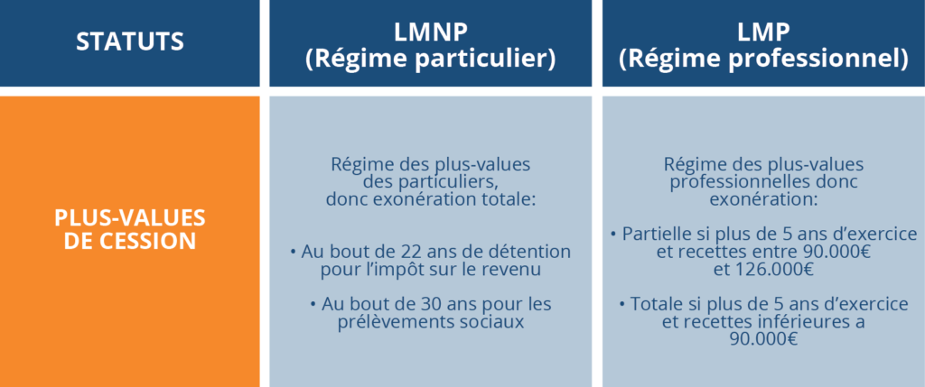 En LMNP c’est le régime des plus-values des particuliers décrit dans cet article qui s’applique.