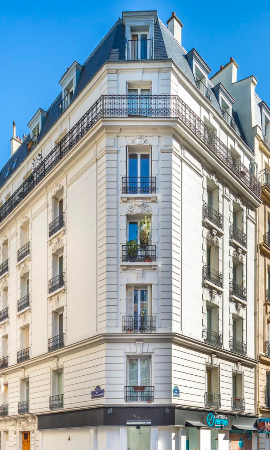 Immeuble de caractère à l'angle des rues Frédéric Magisson et Oscar Roty, construit en 1902, avec une belle façade et une architecture historique. Composé de 30 appartements répartis sur 6 étages (R+6), cet immeuble allie le charme de l'ancien aux équipements modernes.
