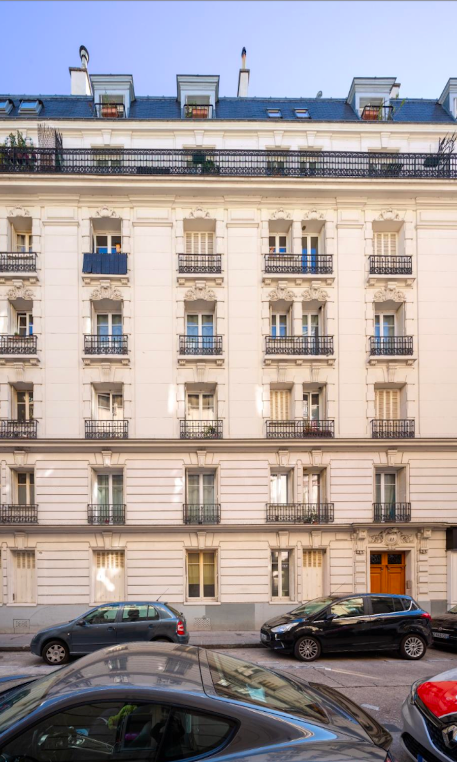 Cet immeuble se distingue par sa belle façade et son architecture historique. Il est composé de 30 appartements répartis sur 6 étages (R+6), avec des caves en sous-sol.