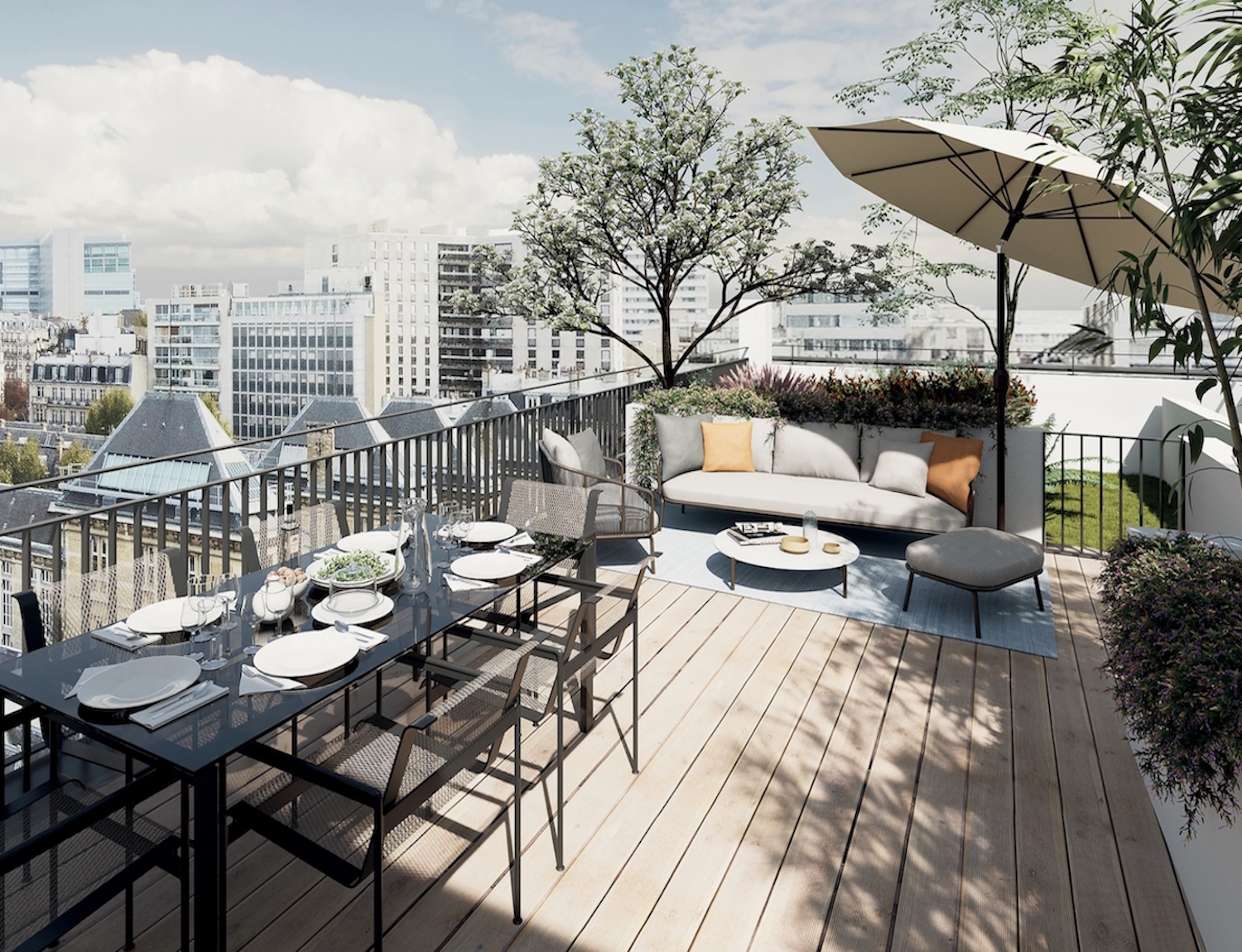 Du studio au 5 pièces duplex, découvrez des appartements d’exception aux volumes généreux et avec terrasses pour certains d’entre eux. Des terrasses en attique prolongent quelques appartements dans les étages supérieurs.