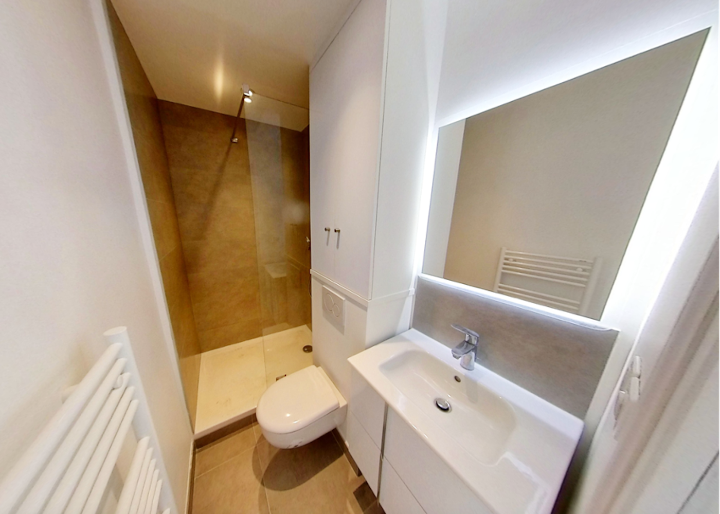L'appartement comprend une entrée, un séjour lumineux, une cuisine, une chambre ainsi qu'une salle d’eau moderne avec toilettes.