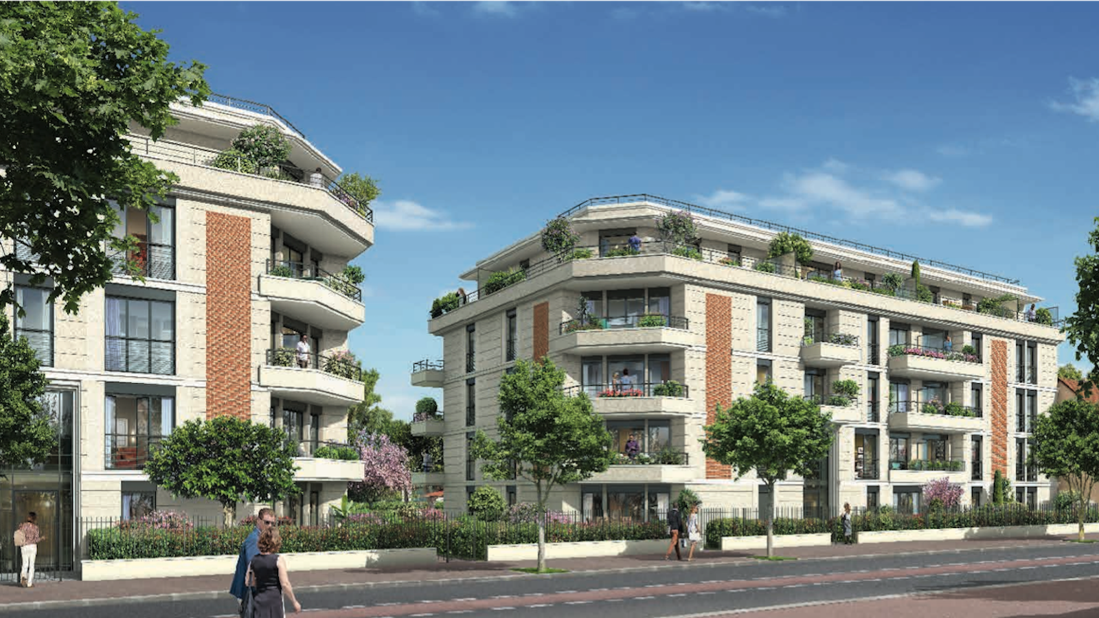 Les deux immeubles de la résidence séduisent par leur architecture classique et leurs matériaux de grande qualité. Les façades sont anoblies par la pierre calcaire de couleur claire, parfaitement associée à l’enduit blanc et gris cendré. La brique de parement de teinte rouge-orangé vient également participer à l’esthétique soignée de cette réalisation. Les nombreux balcons animent les lignes et les pans coupés des bâtiments.