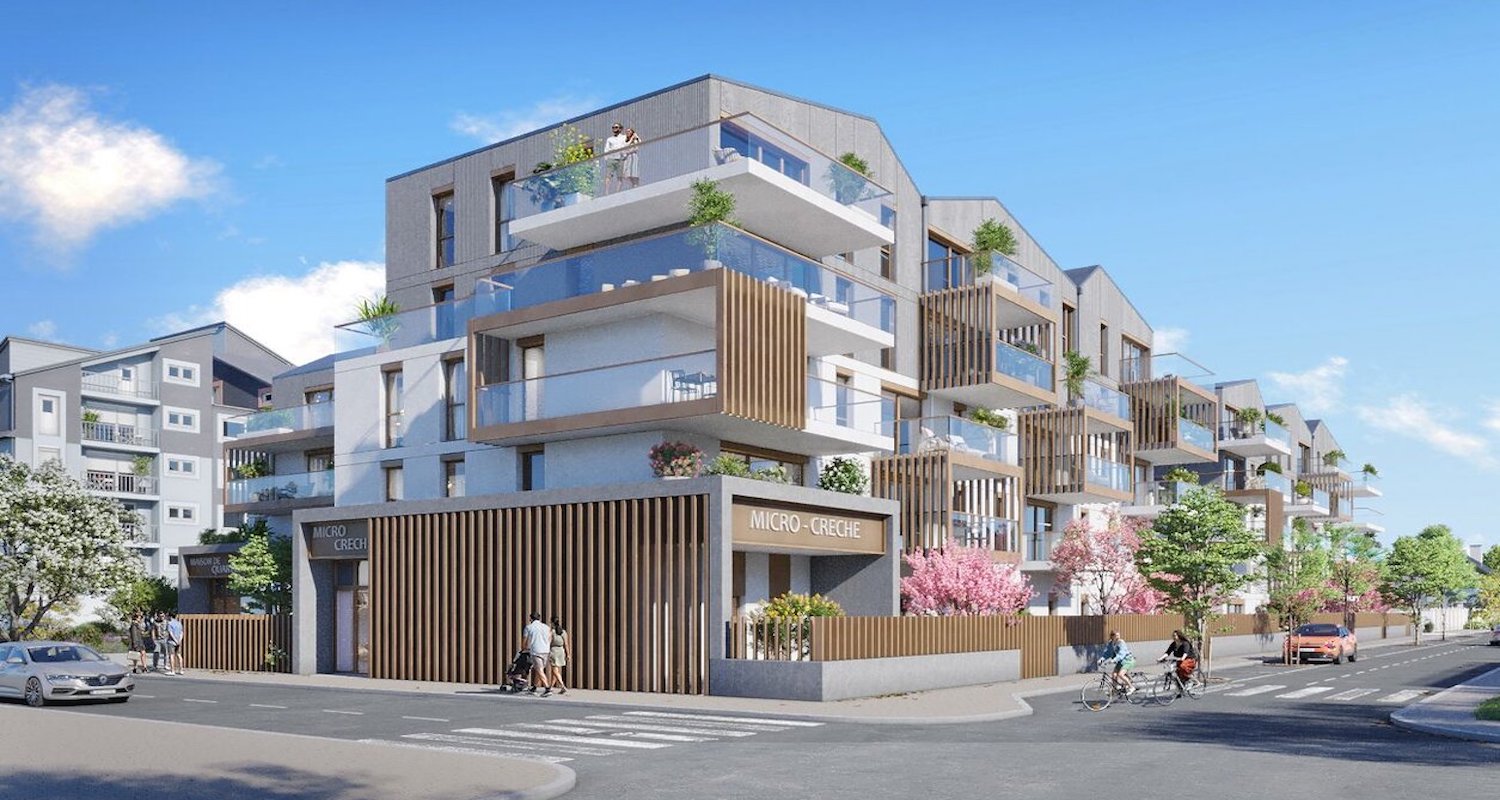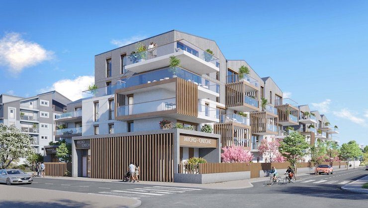Les façades, parées de matériaux de qualité aux teintes équilibrées, s’ajoutent à son charme indéniable. Bordée d’une allée piétonne verdoyante agrémentée de jardinières fleuries, la résidence exhale une atmosphère chaleureuse et conviviale, accueillant une crèche et une maison de quartier.