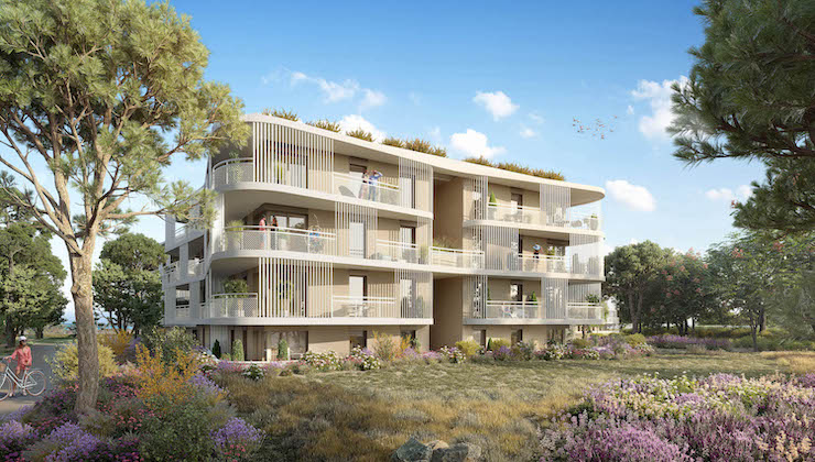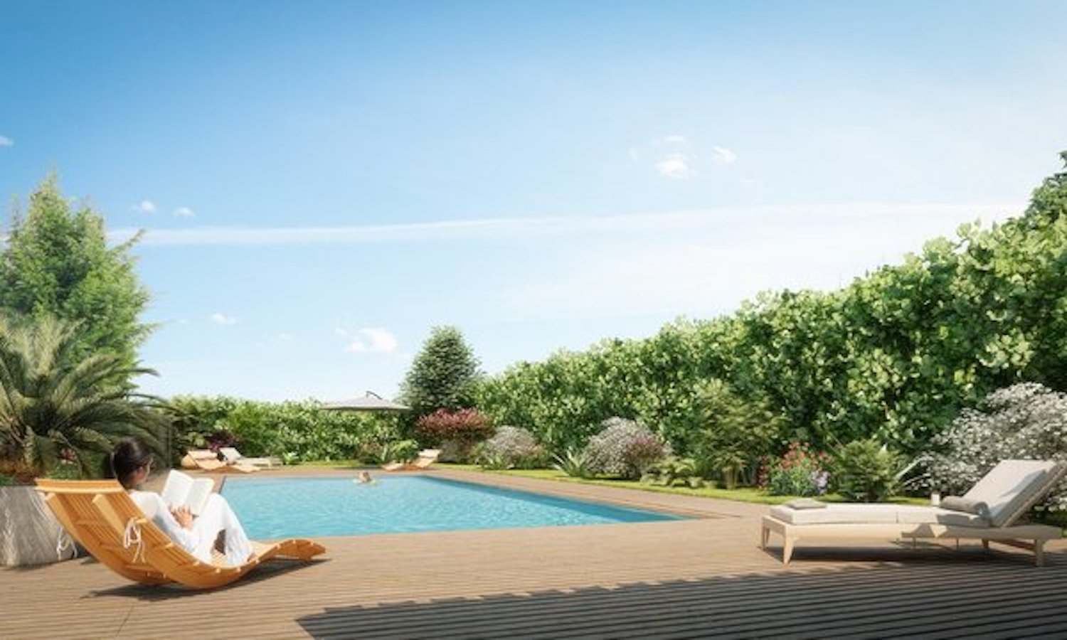 La résidence prend place au cœur d’un domaine de plus d’un hectare. Une piscine centrale, équipée de vestiaires, entourée par une plage en teck et de végétation, sera réservée aux résidents. Micocouliers, chênes verts et cyprès formeront les sujets végétaux les plus structurants, tandis que les petits arbres de Judée ou les fruitiers méditerranéens complèteront la palette. Un cheminement doux piétonnier avec piste cyclable