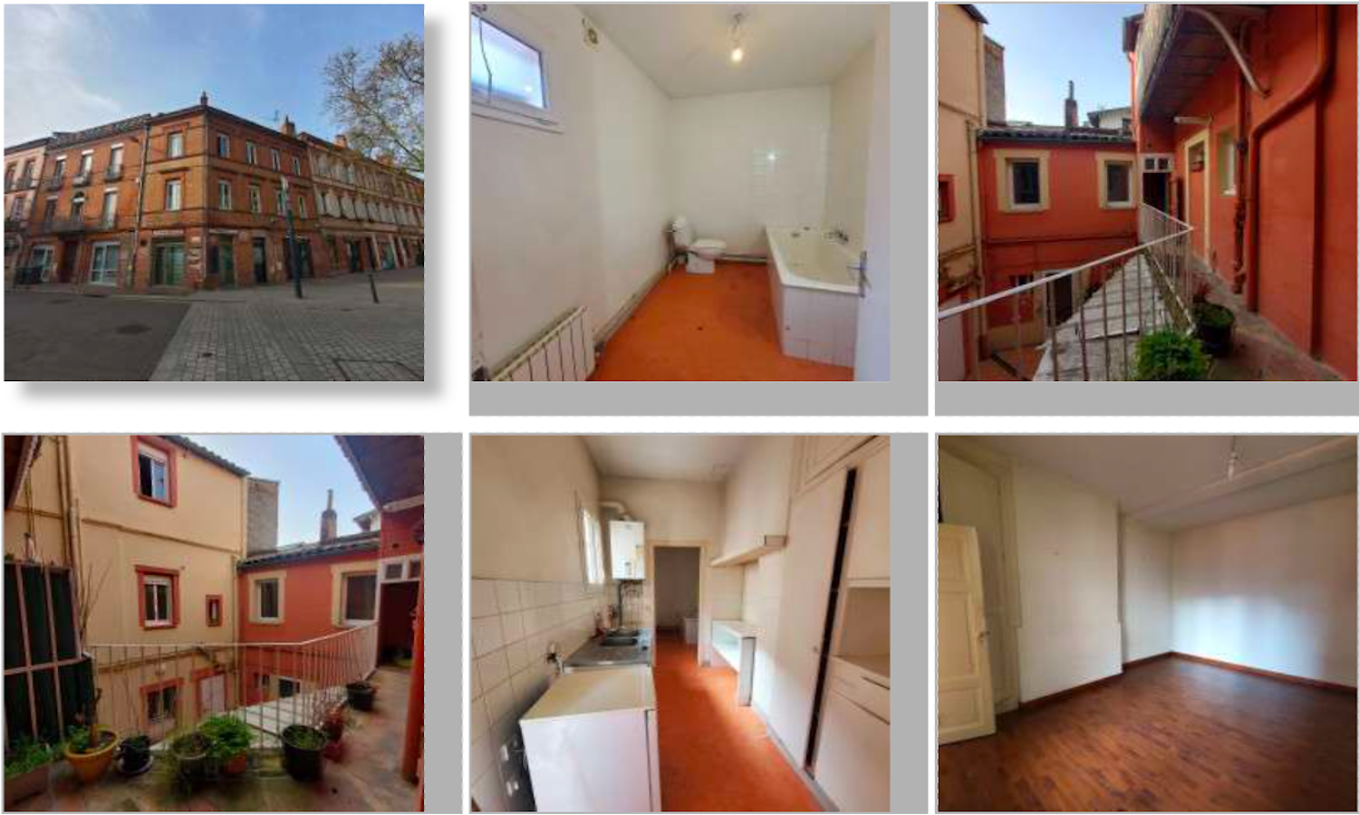 Cet appartement de 32,43 mètres carrés est situé au premier étage d'un petit immeuble ancien de style toulousain en briques rouges et va être entièrement rénové. Il fait partie d'une petite copropriété de seulement 6 lots, avec des charges peu élevées.