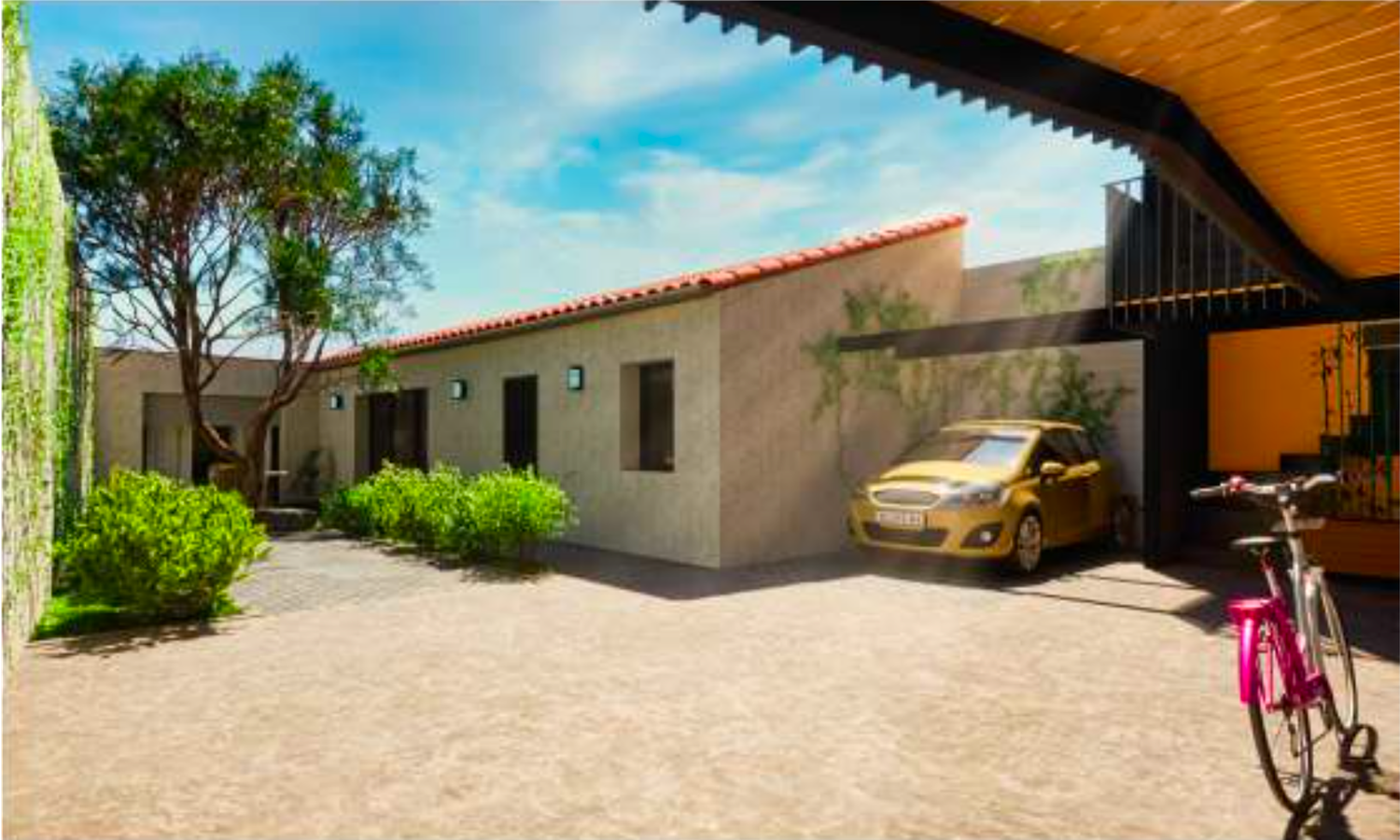 Côté cour intérieure, l’espace a fait l’objet d’une réhabilitation soigneuse permettant aux habitations d’avoir des places de parking et jardin privatif dans un environnement harmonieux.